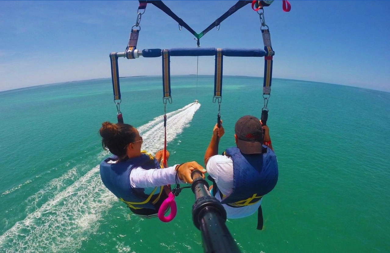 Before parasailing in Montego Bay, you’ll get a safety briefing and have your gear fitted. Then, you’ll hop on a speedboat to the launch spot.
